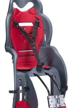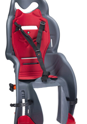 Italiensk kvalitetsbarnsits med trepunktsbälte för montering på pakethållare. Monteras och demonteras helt utan verktyg och är busenkel att flytta mellan olika cyklar. Mörkgrå 35 x 51 x 73 cm För barn upp till cirka 7 år Maxvikt 22 kg EN 14344 Godkänd